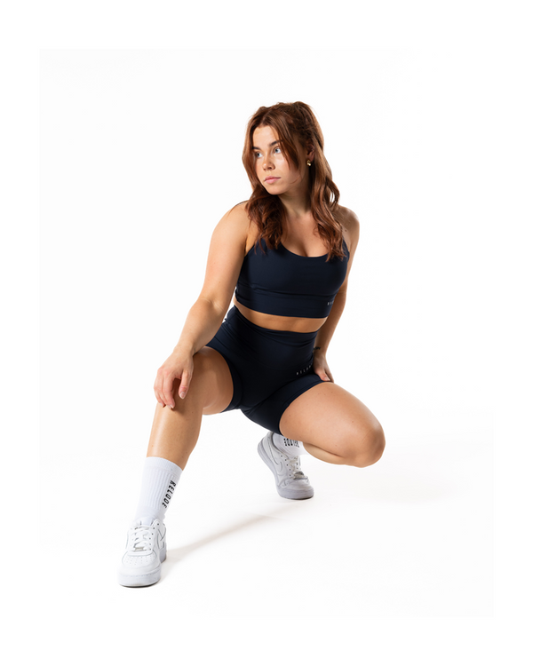 Vi har shorts som är i samma kollektion och material som våra bästsäljande träningstights Mercy. Shortsen finns i alla möjliga färger, från klassisk svart till mer färgstarka cobalt blå. Shortsen är höga i midjan och har en bred resår för att de ska vara bekväma och sitta på plats under hela träningspasset.